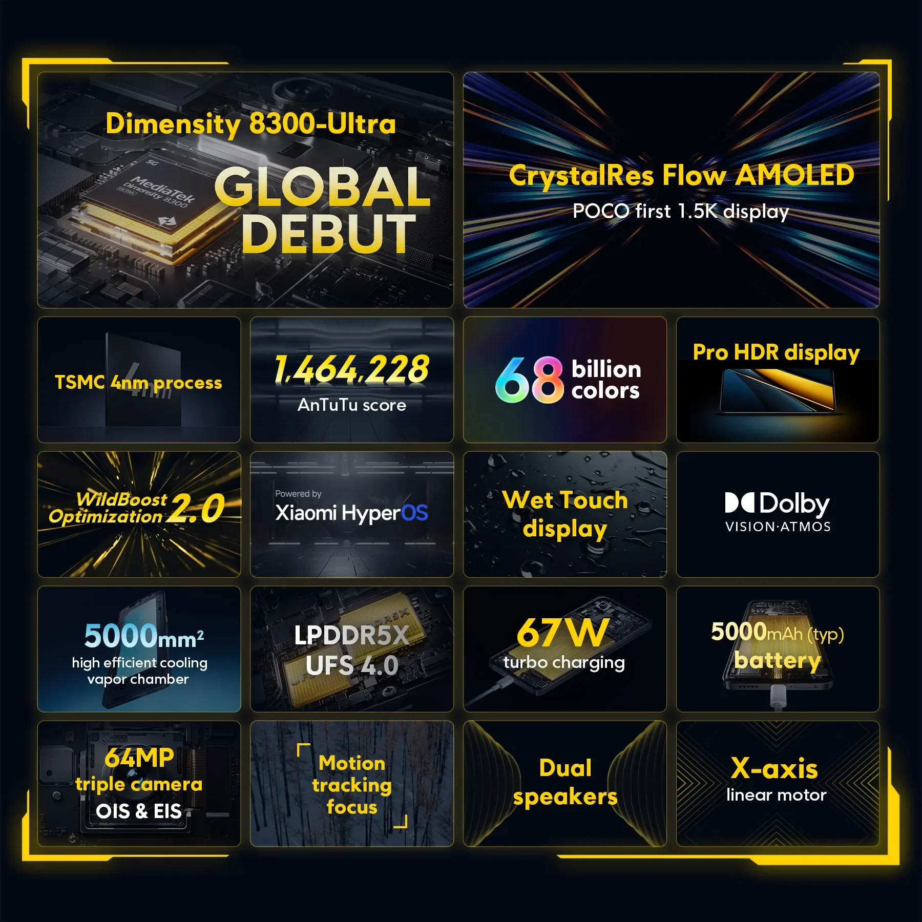 POCO X6 Pro 5G Global Version 256GB/512GB Dimensity 8300-Ultra 64MP Triple Camera 6.67″ 1.5K DotDisplay 67W NFC