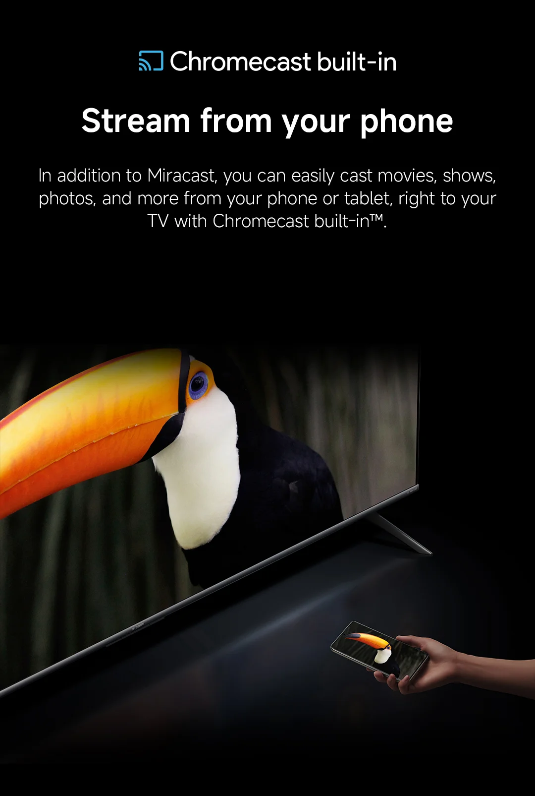- Smart Home: Google Assistant integrated,Google Cast (Chromecast built-in) built-in™,Supports Miracast,Apple AirPlay