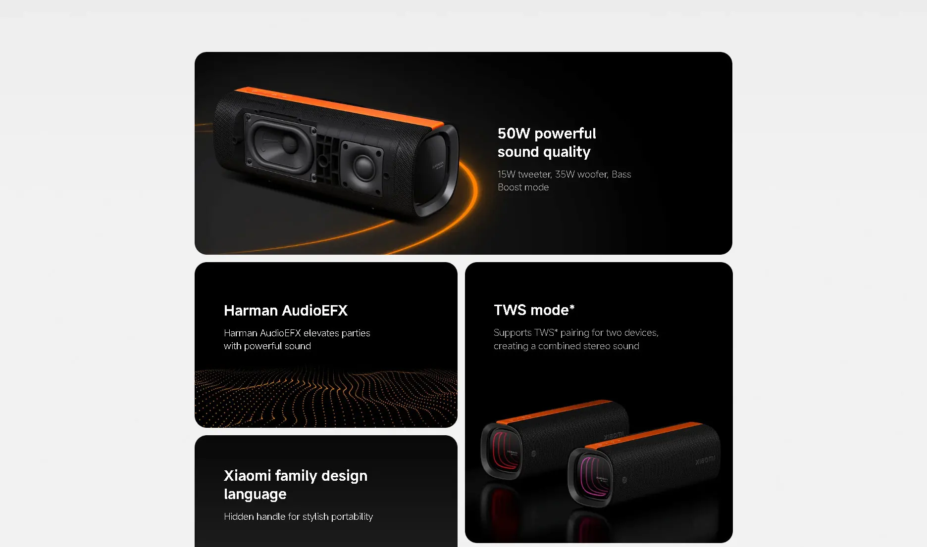 The Xiaomi Sound Party’s waterproof design ensures your music sessions are not interrupted by spills or rain, making it ideal for outdoor activities.