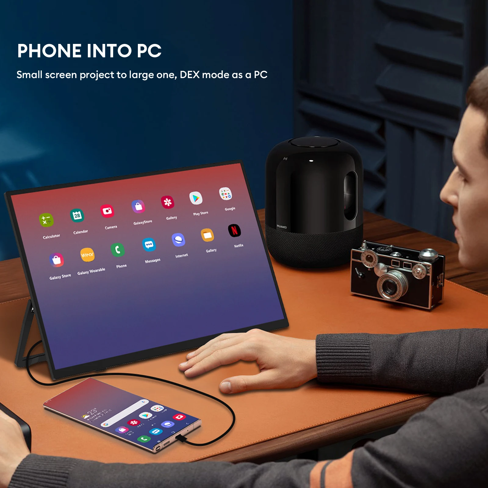 Normally ZP156 supports only one type c to type c cable connection with phone, if it can not be light up, please power by the monitor with phone charger.