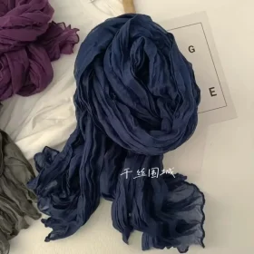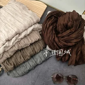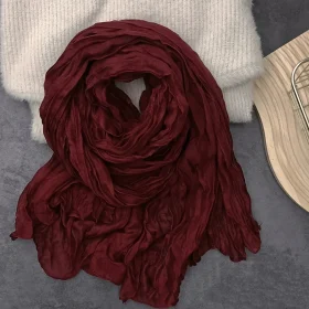 Solid Color Cotton Linen Scarf Retro Autumn Winter New Pleated Green Thin Strip Shawl Men’s Women’s Thermal Silk