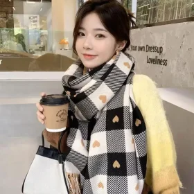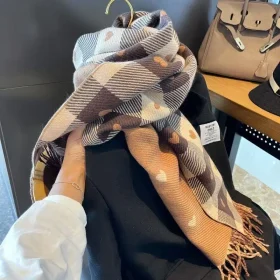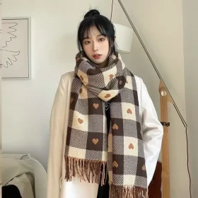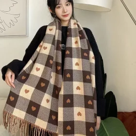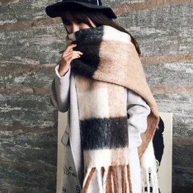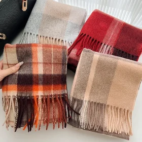 Autumn and winter classic checkered print high-end scarf with ins style for couples, Australian imitation wool texture warmscarf