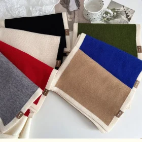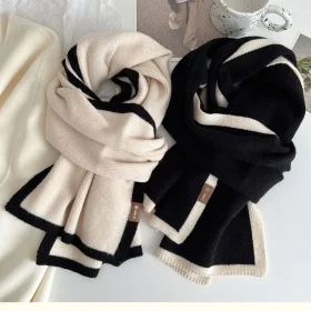 2024 Black and white color matching scarf new winter style high-grade border knitted wool niche design versatile boys and girls