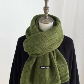 Fashion Women Men Winter Warm Knitted Scarf Solid Color Outdoor Thickened Neckerchief Vintage Wraps Long Scarves Neck Cover