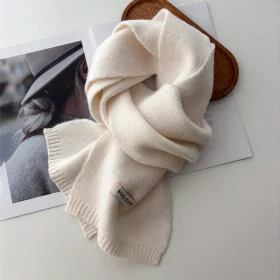 New Winter Thick Warm White Knit Scarf for Women Men Wool Soft Solid Cashmere Neckerchief Preppy Style Couple Students Scarves