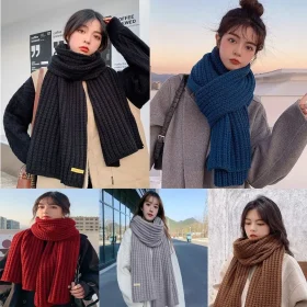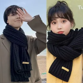 Korean Style Knitted Scarf for Men Women Autumn Winter Solid Color Fashion Simple Literary Thicken Warm Long Neckerchief Bufanda