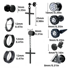 1 /11 Pairs Punk Stainless Steel Stud Earrings Black Earrings Set For Men Women Vintage Hip Hop Piercing Ear Jewelry Accessories