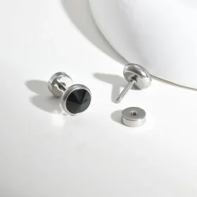 1 Pairs Punk Stainless Steel Stud Earrings Black Earrings Set For Men Women Vintage Hip Hop Piercing Ear Jewelry Accessories