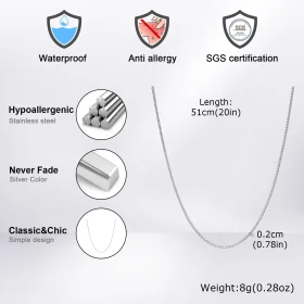 1/2/3MM Thin Chain Necklace for Men Women,Stainless Steel Square Box Chain Link Collars,Male Unisex Jewelry Gift