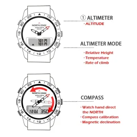 NORTH EDGE Men’s Sports Digital Watch Waterproof 50M Altimeter Barometer Compass Business Luxury Men’s Watch Outdoor Smartwatch