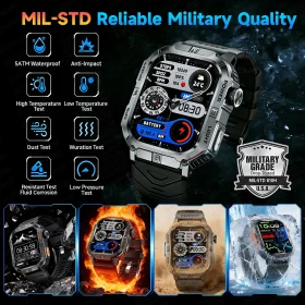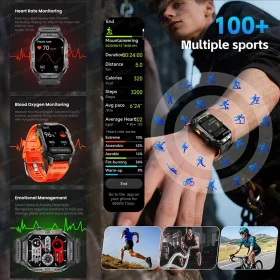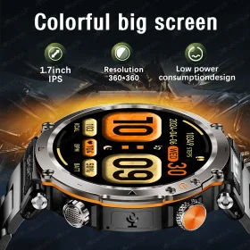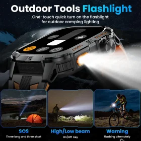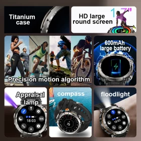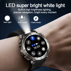 Robust military smart watch 1400Mah battery fitness tracking 10ATM waterproof tactical sports flashlight men’s phone watch