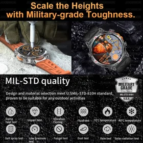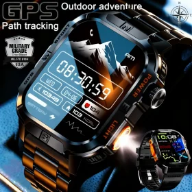 MIL-STD Professional GPS Outdoor Smart Watch Men Flashlight Compass Waterproof Military Sport Tracker Bluetooth Call Smartwatch