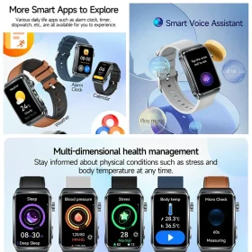 New 1.73″ Sapphire Glass Uric Acid Blood Fat Health Trackr SmartWatch Blood Pressure ECG+PPG Clock Body Analysis Smartwatchs Men
