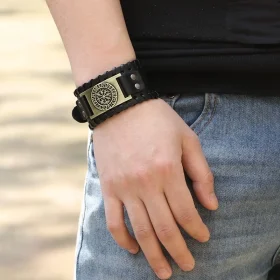 Totem Design Wide Leather Pirate Compass Bracelet Men’s Bracelet Celtic Viking Jewelry Compass Bracelet Accessories Party Gifts