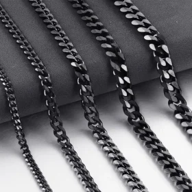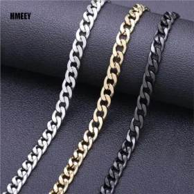 Basic Punk Stainless Steel 3,5,7mm Curb Cuban Necklaces For Men Women Black Gold Color Link Chain Chokers Solid Metal Jewelry