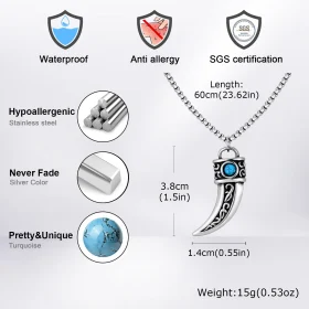 Vnox Horn Turquoise Pendant Necklace for Men, 60cm Box Chain Stainless Steel Wateproof Necklaces, Ethnic Style Accessories Gifts