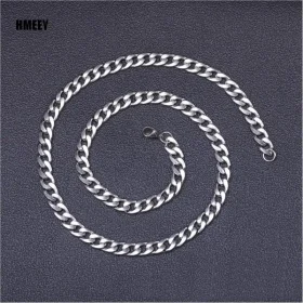 Hmeey Stainless Steel Chain Necklace Long Hip Hop for Women Men on The Neck Fashion Jewelry Gift Accessories Silver Color Choker