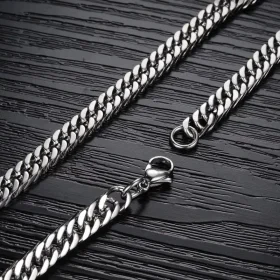 YQ 8MM-12MM Wide 316L Stainless Steel Cuban Link Chain Necklace Bracelet For Men Thick Punk Hip Hop Accessories Male