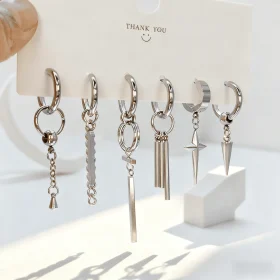 5 Pairs Cute Punk Star Romantic Stainless Steel Piercing Hoop Earring Set for Man Woman Teens Jewelry Y2k Accessories Trendy New