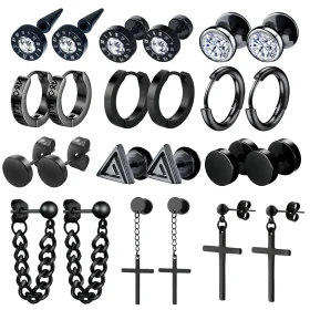 1 /11 Pairs Punk Stainless Steel Stud Earrings Black Earrings Set For Men Women Vintage Hip Hop Piercing Ear Jewelry Accessories