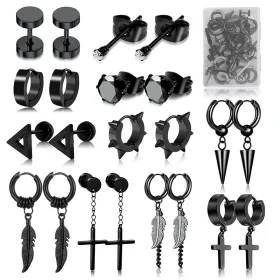 12-24Pcs Punk Hip Hop Stainless Steel Stud Earring Set Piercing Black for Women Man Teen Jewelry Rock Gift Accessories Trend New