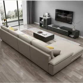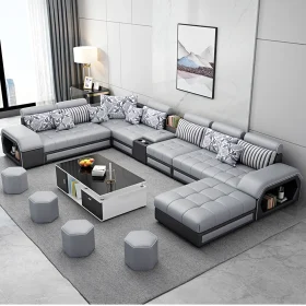 Linlamim Fabric Sofa Set Furniture Living Room Sofa Set with USB and Stools / Big U Shape Cloth Couch Sofas for Home Furniture