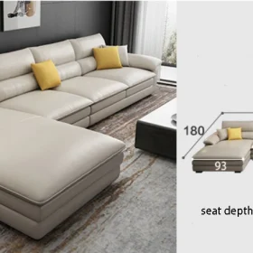 MANBAS Nordic Living Room Sofa Italian Genuine Leather Couch L-shaped Sectional Sofa Sets for Home Furniture Seating Room