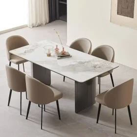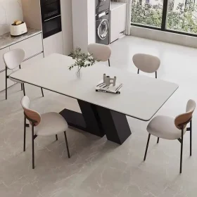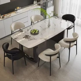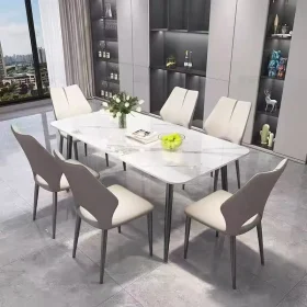 Latest Design Home Furniture Modern Luxury Marble Top Stainless Steel Black And Gold Base Dining Table Set