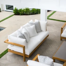 Hotel Modern Sofa Set Garden Teak Outdoor Furniture Aluminum Wood Patio Outdoor Couch Sectional Teak Luxury Garden Sofa Set