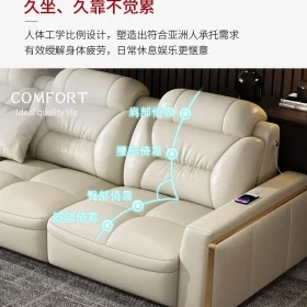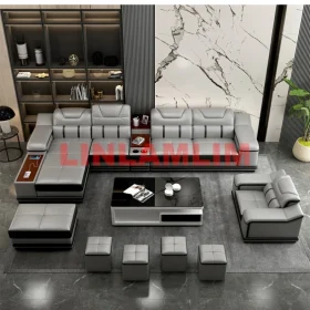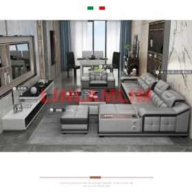 Premium Italian Genuine Leather Sectional Sofa Sets Couch Sofas with USB and Bluetooth Speaker – MANBAS Living Room Furniture