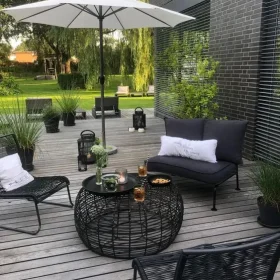 Nordic Hotel Villa Outdoor Sofas Garden Furniture Waterproof PE Hotel Villa Garden Rattan Aluminum Teak Wood Sectional Sofa Set