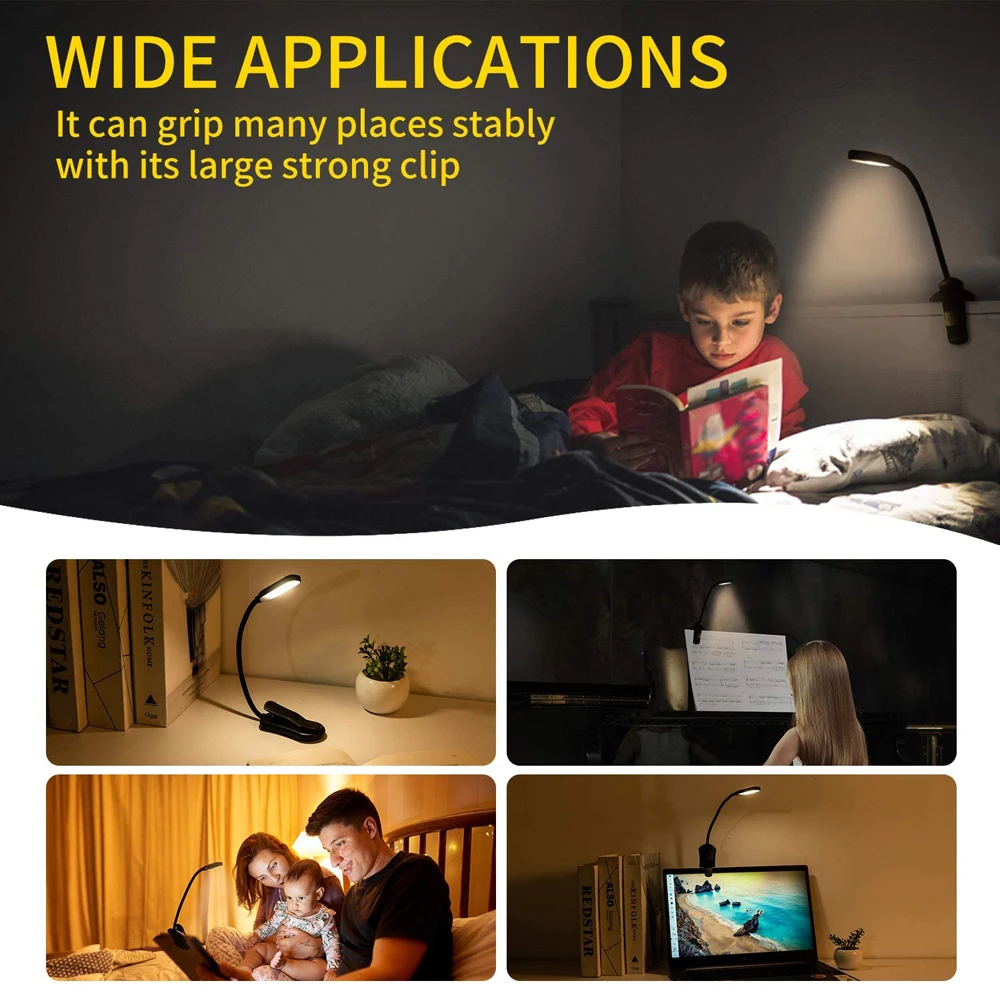 【Flexible Neck&Sturdy Clip】This clip light is flexible and provide 360 degrees functionality. Double rubber pad on the clip protects pages from being damaged.