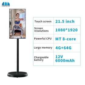 Built-in camera 21.5 inch HD Live streaming machine touch screen WIFI By-Me with Battery smart TV Moveable stand Lcd monitors