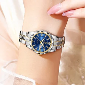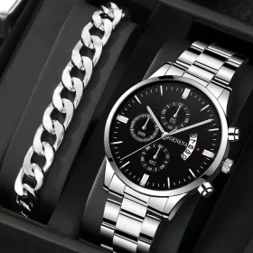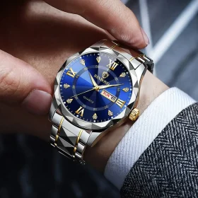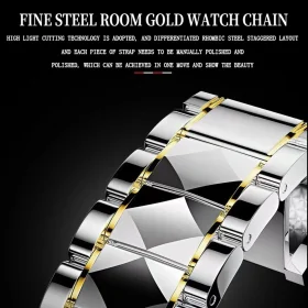 Fashion Men’s Quartz Wrist Watch Classic High-end Luxury Business Calendar Stainless Steel Business Wristwatch for Gifts