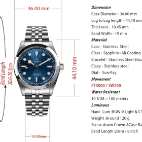Similar products: "Hruodland 2025 36mm New Classic Automatic Men Dress Watches NH38 Mechanical Stainless Steel Bracelet Black Sport Wristwatch Male"