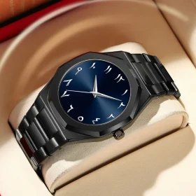 Fashion Business Men Watch Top Brand Luxury Steel Belt Black Simple Arabic Digital Dial Quartz Wristwatches Relogios Masculino