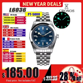 Cronos BB36 Mechanical Men Watch 36mm Automatic PT5000 Sapphire Glass Bushed Bracelet 10ATM L6036M