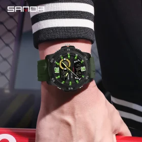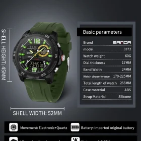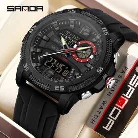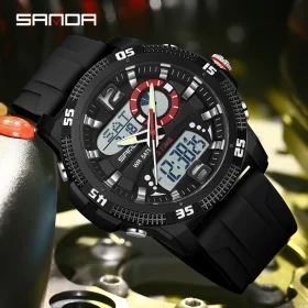 SANDA Fashion Luxury Men’s Watches Dual Digital Display Sport Analog Quartz Man Wristwatch Casual Waterproof Silica Chronograph