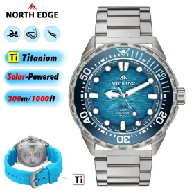 NORTH EDGE 2025 NEW+ TRITON-TI Titanium Solar-Powered Diving Watch Luxury Quartz Watches For Men 300M Waterproof 180+ Day Power