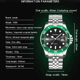 SANDA New 1099 Business Men’s Quartz Watch Personalized Waterproof Night Light Calendar Fashion Men’s Quartz Watch