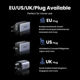 UGREEN 65W GaN Charger 4 Ports USB C Fast Charger Quick Charge 3.0 PD 3.0 For Macbook Air Laptops Tablet iPhone 17 16 15 Pro Max