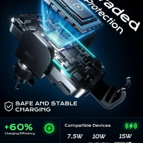 UYUXIO Auto Clamping Wireless Car Charger Adapter Super Fast Charging Air Vent Car Phone Holder for iPhone 16 15 Pro Max Samsung