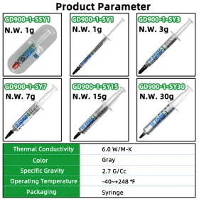 GD900-1 Thermal Grease Thermal Paste Conductive Heat Sink Compound Plaster 6.0 W/M-K 1/3/7/15/30g For CPU GPU Cooling Cooler SSY