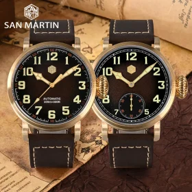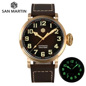 San Martin 45mm CuSn8 Bronze Pilot Men Watch YN55A Automatic Mechanical Vintage Military Simple Style Sapphire Waterproof 10Bar