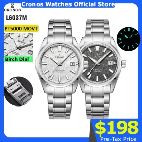 Cronos New Rhombus Perlage 39mm Dial PT5004 Miyota 90S5 See-through Caseback Men Automatic Wristwatches 10ATM Lumious