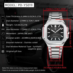 PAGANI DESIGN New V2 Men’s Square Quartz Watch Top Luxury Brand Sports Waterproof Sapphire Stainless Steel Quartz Watch