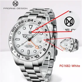PARANE DESIGN Men’s Mechanical Wristwatch Business Travel GMT Watches Sapphire stainless steel watch reloj hombre PG1682