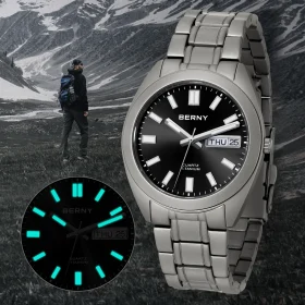 BERNY Titanium Watch for Men Supper Light Weight Wristwatch Super Luminous Sapphire 10ATM Waterproof Sport Field Quartz Watches