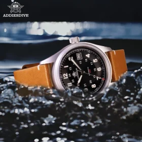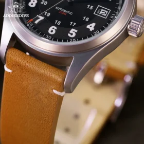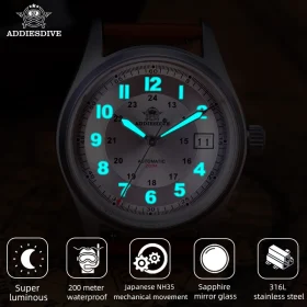 ADDIESDIVE Luxury Steel Analog Watch Sapphire Crystal 200m Diving Mechanical Watch Leather Strap Blue Luminous Men Watch AD2048