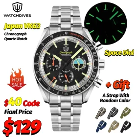 Watchdives WD1863 Mechanical Quartz Watches Black Spaces VK63 Chronograph Sports Watches Man Bubble Sapphire Waterproof Watch